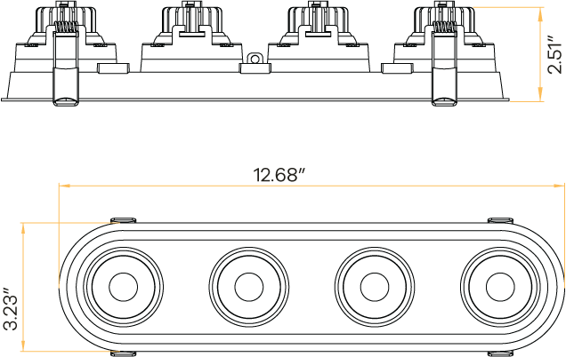 3" Oval Four Head Regress Gimbal Black